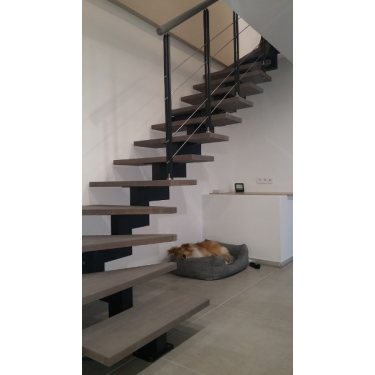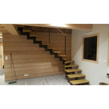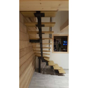 Ses marches en hêtre massif (40 mm d'épaisseur) son limon central (mono-poutre) en métal lui donnent de la légèreté et lui confèrent une ligne moderne (mais pas trop). Ses multiples choix de couleurs tant pour les marches que pour les parties métalliques feront de lui un véritable élément assorti à votre intérieur.