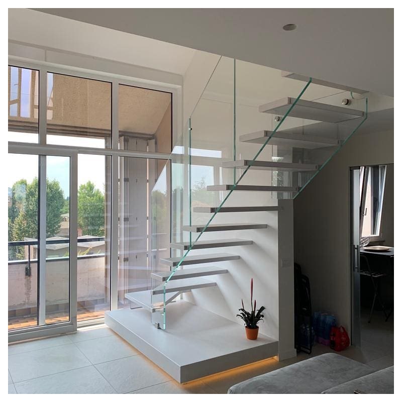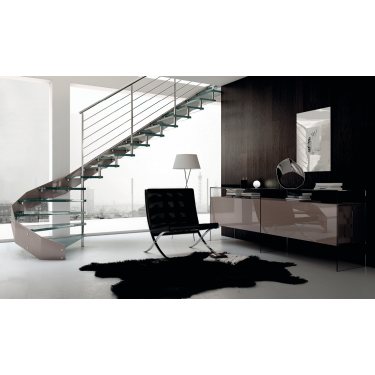 Escalier quart tournant sur mesure en verre et métal, idéal pour optimiser votre espace tout en apportant lumière et modernité