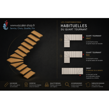 Vous proposer un escalier quart tournant sur mesure parfaitement adapté à votre intérieur, alliant design, qualité et fonctionnalité.